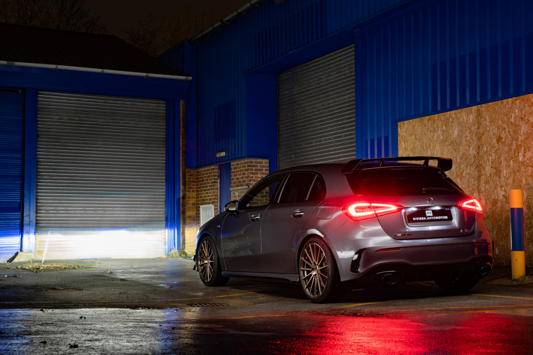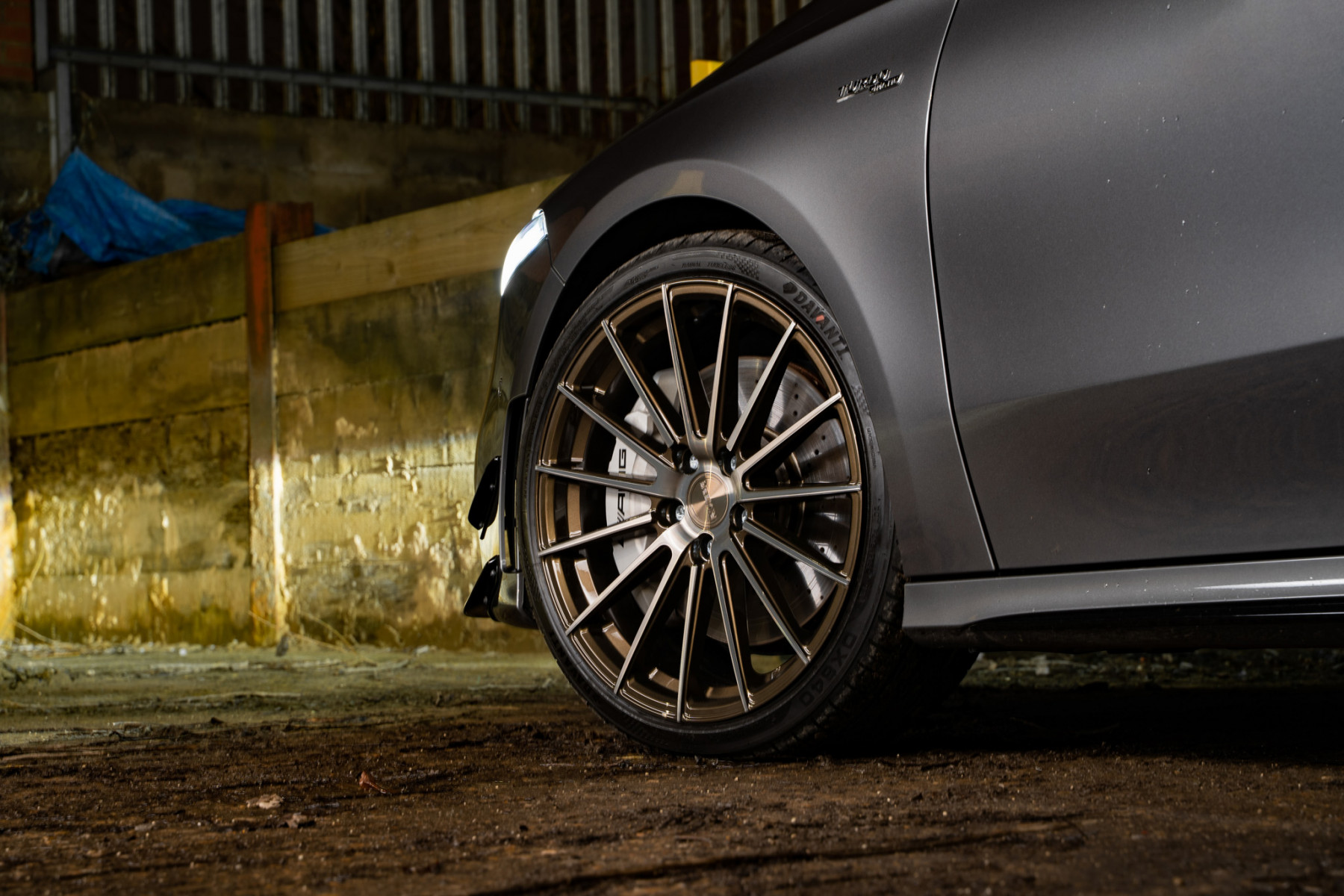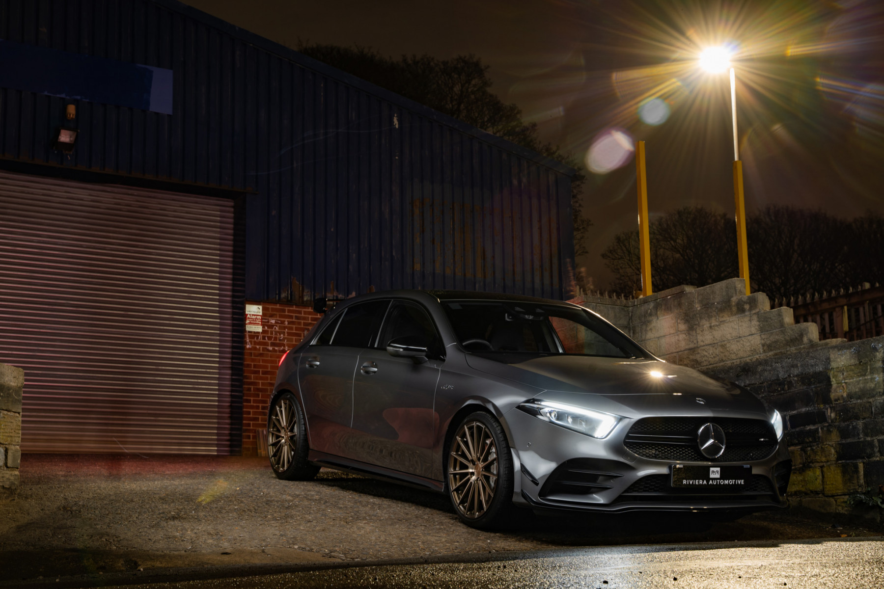 We fit a set of our Riviera RF105 finished in Bronze Double Dark Tint to this Mercedes A35 AMG which complement the Grey paint work perfectly. with 19×8.5 all round, we gave this A35 an aggressive flush fitment improving the look and stance.